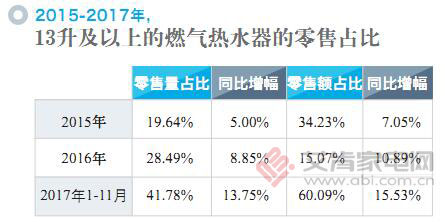 管網(wǎng)覆蓋面的不斷增加,刺激了多省份燃?xì)鉄崴鞯某掷m(xù)擴(kuò)容。其中,云南紅河、西雙版納的燃熱市場規(guī)模在2017上半年的增長速度超過4倍,貴州畢節(jié)、廣西清遠(yuǎn)的規(guī)模增長速度則在1~3倍之間??梢灶A(yù)見,伴隨著一二線城市的房地產(chǎn)交易降溫、新增需求下降,未來燃?xì)鉄崴鬟@一品類的銷售主陣地將向更為廣闊的三四級(jí)市場延伸和轉(zhuǎn)移。