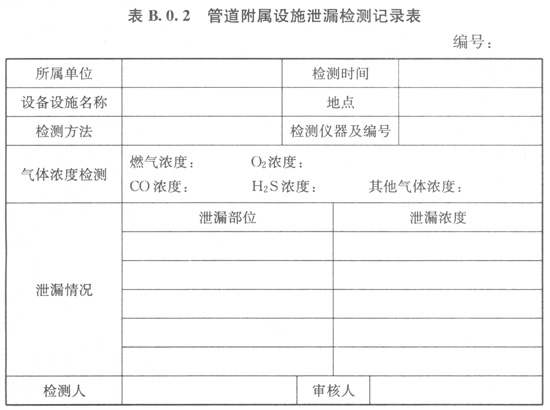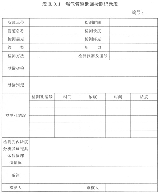 B.0.1燃?xì)夤艿佬孤z測(cè)記錄可選用表B.0.1的格式。