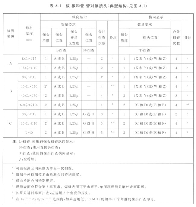 備種類型焊接接頭的檢測(cè)等級(jí),見(jiàn)圖A.1~圖A.7和表A.1~表A.7。