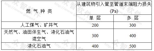2 當由樓幢調(diào)壓箱供應低壓燃氣時,室內(nèi)低壓燃氣管道允許的阻力損失,也可按本規(guī)范第6.2.8條計算確定。