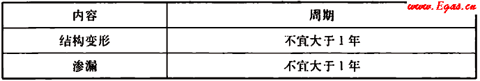 4.4.3 管廊本體定期檢測(cè)主要內(nèi)容和周期應(yīng)符合表4.4.3的規(guī)定,并應(yīng)包括下列內(nèi)容: