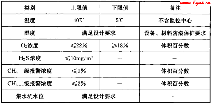 表5.6.4 主要環(huán)境參數(shù)報警設定值
