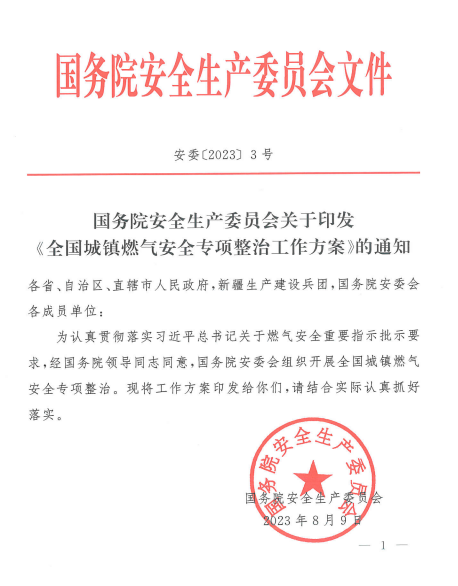全國(guó)城鎮(zhèn)燃?xì)獍踩珜m?xiàng)整治工作方案