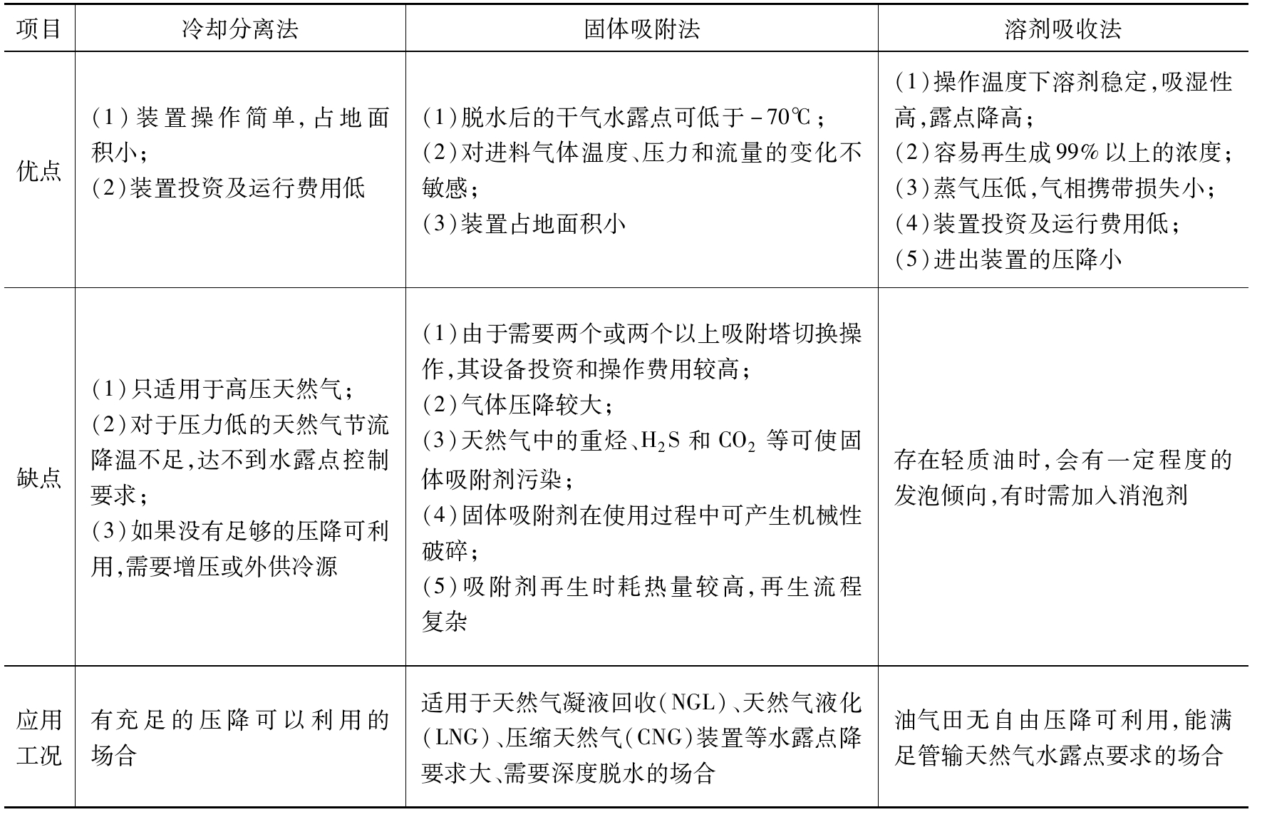 (1)冷卻法:將原料天然氣冷卻到稍高于水合物形成的溫度,可使大部分水分冷凝出來(lái)。此法只用于大量水分的粗分離。