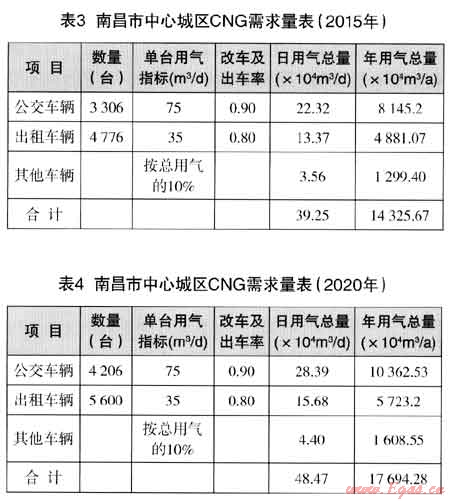 除中心城區(qū)外,南昌市其余4個(gè)縣級(jí)城市車輛用氣需求量,至2015年各考慮2×104m3/d,共8×104m3/d;至2020年再各考慮增加2×104m3/d,共計(jì)16×104m3/d。