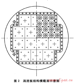渦流板是分離器的核心,由渦流盤組成,渦流盤由接液盒組成,每個接液盒由4個渦流管和1個排水管組成,結構如圖2所示。