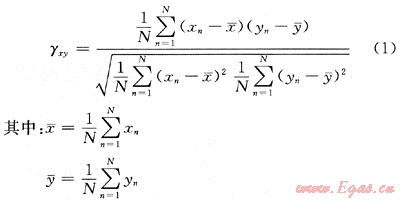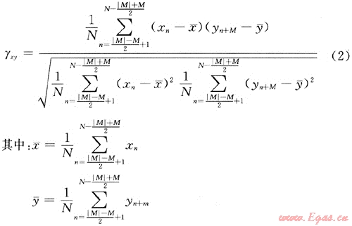 M是Yn相對于Xn的深度差(采樣點(diǎn)數(shù)差),式(2)在M<<N時適用。以M為變量,在適當(dāng)?shù)乃阉鞔伴L內(nèi)變化,則當(dāng)M正好為yn相對于xn的實(shí)際深度差時,計算得到的γxy應(yīng)為最大。以此反推,在搜索窗長范圍內(nèi),當(dāng)計算的相關(guān)系數(shù)最大時,M即為yn相對于xn的實(shí)際深度差(采樣點(diǎn)數(shù)差)。