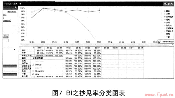 GDIA系統(tǒng)對(duì)數(shù)據(jù)挖據(jù)及BI展現(xiàn)作了有意義的嘗試。BI展現(xiàn)技術(shù)可按使用者的不同管理思路和需要,進(jìn)行多維度的自由分解展現(xiàn),系統(tǒng)實(shí)現(xiàn)了抄見率、賬款回收等指標(biāo)的深層挖掘和分解下鉆,為管理者提供了全新的分析角度,起到了抄表銷售管理和賬務(wù)管理的輔助決策工具的作用。該功能的實(shí)現(xiàn)也對(duì)使用者提出了很高要求,使用者不僅要熟練掌握各類業(yè)務(wù)流程及熟悉系統(tǒng)數(shù)據(jù)結(jié)構(gòu),同時(shí)需要具備相當(dāng)廣度與深度的管理分析能力。