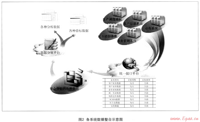 為了解決數(shù)據(jù)分散獨(dú)立的現(xiàn)狀,公司于2009年初正式啟動(dòng)“GDIA系統(tǒng)項(xiàng)目”,旨在探究有效的技術(shù)方法和手段,在各系統(tǒng)間建立起數(shù)據(jù)紐帶與交互機(jī)制,將各個(gè)數(shù)據(jù)庫中公司關(guān)心卻沒能有效組織的數(shù)據(jù)信息整合展現(xiàn)到統(tǒng)一直觀的GDIA系統(tǒng)平臺(tái)中來,GDIA系統(tǒng)作為信息數(shù)據(jù)整合的試基石,在燃?xì)馐斜惫菊麄€(gè)信息化進(jìn)程中起著承前啟后的深遠(yuǎn)作用。