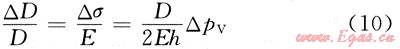 根據胡克定律,周向應力的變化會使套管的外徑產生一個變化,如下: