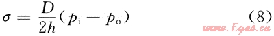 式中:D為套管的直徑,mm;h為壁厚,mm;pi、po分別為管內和管外的壓力,MPa。