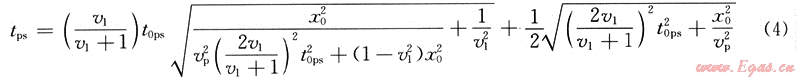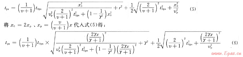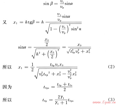 對于水平反射層,轉(zhuǎn)換波的時距方程可寫為: