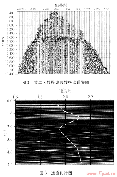 為了減少分析環(huán)節(jié)、減少轉(zhuǎn)換波速度分析初始速度比值人為給定的盲目性,提高其準確性和減少誤差的積累,從而提高整體轉(zhuǎn)換波速度分析精度,筆者推導了只有一個輸入?yún)?shù)的轉(zhuǎn)換波二參數(shù)時距方程,發(fā)展了相應的轉(zhuǎn)換波速度分析和動校正方法,它基于共轉(zhuǎn)換點道集來分析。理論模型和實際資料處理結果表明本方法具有分析步驟少、累積誤差小、分析精度高。