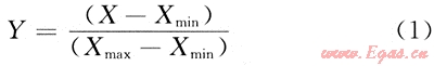 為了使各特征參數(shù)有利于對(duì)比,對(duì)測(cè)井曲線進(jìn)行歸一化[10~12]處理,即