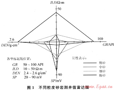 以往的巖性和沉積環(huán)境的研究工作[1~2]都是主要通過(guò)巖心觀察或者綜合分析巖屑錄井資料,但取心及巖屑錄井資料都有限。而事實(shí)上,每口井的各種測(cè)井資料所提供的豐富的地質(zhì)信息并未得到充分的利用,高效利用測(cè)井資料中豐富地質(zhì)信息已成為沉積相的研究工作從定性解釋向定量解釋發(fā)展的方向了。近年來(lái),于民鳳等[3]通過(guò)蜘蛛網(wǎng)圖和梯形圖的方法,展示了不同沉積相的特征;唐洪等[4]應(yīng)用直方圖或頻率交會(huì)圖等方法,從測(cè)井相等展示了不同沉積相的特征;嚴(yán)科等[5]實(shí)現(xiàn)了沉積微相的人機(jī)交互識(shí)別,應(yīng)用Bayes統(tǒng)計(jì)方法,建立測(cè)井相-沉積微相線性判別模型,取得了明顯的成效。