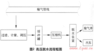 (2) 站址靠近高壓管線,對于燃?xì)夤?yīng)系統(tǒng)來說,壓力就是財(cái)富,可以充分利用高壓管線壓力,從高壓系統(tǒng)中取氣壓縮。由于市政管道內(nèi)天然氣氣質(zhì)良好,而且壓力相對較高,此情況下高壓脫水、低壓脫水均可采用,具體視項(xiàng)目實(shí)際情況確定。