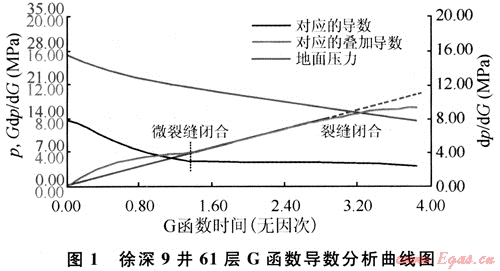 對(duì)于每一個(gè)時(shí)間t都有一個(gè)與之對(duì)應(yīng)的地面壓力,在求出相應(yīng)的G函數(shù)同時(shí),可采用一階差分?jǐn)?shù)值計(jì)算方法,求出對(duì)應(yīng)的dp/dG。為便于分析,從數(shù)學(xué)意義上將G函數(shù)和一階差分計(jì)算結(jié)果dp/dG相乘,構(gòu)造了疊加導(dǎo)函數(shù)Gdp/dG。以dp/dG、Gdp/dG為縱軸,以G為橫軸,得出G函數(shù)導(dǎo)數(shù)分析曲線。