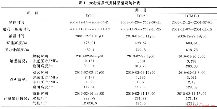 抽采40余天煤層開(kāi)始解吸,壓力逐漸上升,進(jìn)入產(chǎn)氣階段。DC-1井、DC-2井、DCMT-3井于2010年2月9日、3月8日、2月2日先后點(diǎn)火成功。到6月30日共計(jì)采出地層水2005.4m3(含溢流);采出煤層氣共計(jì)35.1×104m3。