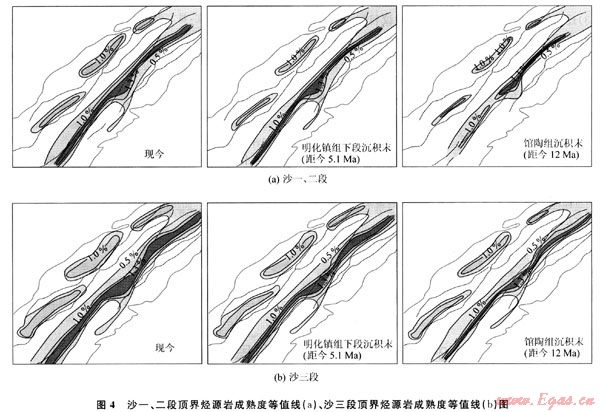 摘要:為研究渤海東北部海域遼東灣地區(qū)烴源巖的演化史,運(yùn)用盆地模擬技術(shù),在恢復(fù)該區(qū)熱演化史和埋藏史的基礎(chǔ)上,利用EASY%Ro計(jì)算模型對(duì)10條測(cè)線進(jìn)行烴源巖成熟度演化分析,勾畫出烴源巖演化平面圖,得出遼中凹陷和遼西凹陷烴源巖的演化特征。研究結(jié)果表明:①遼中凹陷中北洼熱演化程度明顯高于南洼;②遼西凹陷北洼、南洼、中洼熱演化程度基本相同;③遼中凹陷比遼西凹陷熱演化程度高;④現(xiàn)今,遼中凹陷深部古近系沙河街組三段和沙一、二段烴源巖處于高成熟階段,凹陷邊緣處于重要生油區(qū),遼西凹陷主力烴源巖處于生油氣高峰。