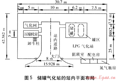 工業(yè)企業(yè)LPG氣化站站址的選擇,不僅要考慮工藝系統(tǒng)設(shè)備的布局對(duì)建筑面積的要求,而且要考慮相關(guān)規(guī)范對(duì)氣化站安全防火距離的要求。