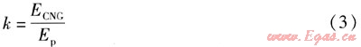 式中k——CNG發(fā)動機(jī)與汽油機(jī)單位體積混合氣理論含有能量之比[14]