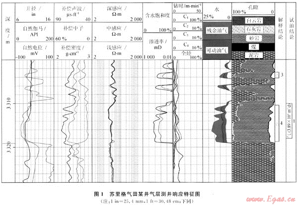 對于氣層識(shí)別來說,一個(gè)好的氣層,天然氣密度較大,使含氫指數(shù)、密度和聲波傳播速度都增高,故減少了幾種視孔隙度間的差異,從而可能將其誤判為含水層,甚至為水層。