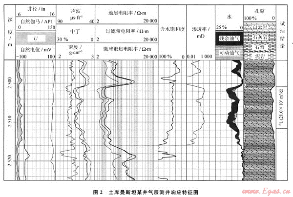 以往對儲(chǔ)層進(jìn)行氣水或油氣判別時(shí),主要基于天然氣的低含氫指數(shù)及挖掘效應(yīng),氣層視中子孔隙度降低,而聲波和密度視孔隙度增高,且其差別越大,越符合氣層特征。但在測井解釋中卻發(fā)現(xiàn)有些高產(chǎn)氣層的視中子孔隙度并不很低,而密度、聲波視孔隙度卻增大不多,故經(jīng)常導(dǎo)致氣水或油氣判別失誤[1~2]。如圖1和圖2所示,它們分別是蘇里格氣田某井產(chǎn)氣3.89×104m3/d氣層和土庫曼斯坦氣田某井產(chǎn)氣21.0×104m3/d氣層的測井響應(yīng)特征,顯然高產(chǎn)氣層的視孔隙度關(guān)系反而更接近水層特征。