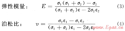 式中:E為彈性模量;v為泊松比;σ1、σ2、σ3為三軸壓力,其中σ1表示垂向壓力,實(shí)驗(yàn)中指軸壓,σ2、σ3表示水平壓力,實(shí)驗(yàn)中指圍壓,在假三軸力學(xué)實(shí)驗(yàn)中,;σ2=σ3;ε1為垂向應(yīng)變,實(shí)驗(yàn)指軸向應(yīng)變;ε2橫向應(yīng)變,實(shí)驗(yàn)指平均徑向應(yīng)變。