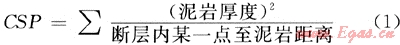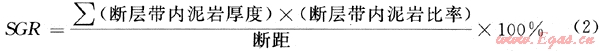 斷層活動過程中,由于拖曳、擠壓、研磨和塑性流動等作用,沿斷裂分布的極細粒的非滲透性泥狀物,敷著在斷層面上,使斷裂帶具有高的排驅(qū)壓力,增強了斷層的封閉性。反映涂抹效應的常用指標有多種[1、21~22],主要為斷層泥比率(SGR)、縱向封堵系數(shù)(R)和橫向封堵系數(shù)(F)、泥巖涂抹潛勢(CSP)等。其中: