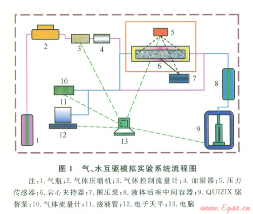 根據水驅砂巖氣藏型儲氣庫建設及運行特征,設計了室內氣、水互驅物理模擬實驗系統(tǒng)(1)。