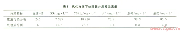 從表5數(shù)據(jù)可知,采用復(fù)合工藝技術(shù)處理鉆井廢液,其主要的污染指標(biāo)均能達(dá)到一級排放標(biāo)準(zhǔn)(GB8978—1996)