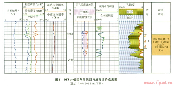 利用所述的低阻氣層識(shí)別方法及解釋評(píng)價(jià)模型,對(duì)東方區(qū)塊的探井資料進(jìn)行處理與解釋評(píng)價(jià),解釋成果與測(cè)試結(jié)果具有較高的符合率,能大幅度提高低阻氣層識(shí)別的成功率,在東方區(qū)塊具有較好應(yīng)用效果。