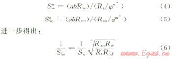 上式中σt經(jīng)常又用深側(cè)向電導率來代替。Swd、Swf分別為粒間孔隙系統(tǒng)和裂縫系統(tǒng)的飽和度;φd為粒間孔隙度;md為粒間孔隙系統(tǒng)的膠結(jié)指數(shù);nd、nf分別為粒間孔隙系統(tǒng)和裂縫系統(tǒng)的飽和度指數(shù);σmf為鉆井液濾液電導率;