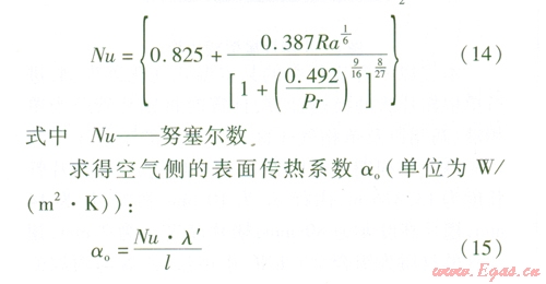 由于翅片管為立式安裝,故此處自然對流換熱計(jì)算選用豎壁準(zhǔn)則關(guān)聯(lián)式: