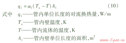 由此可以確定出管內(nèi)單位長度的對流換熱量ql: