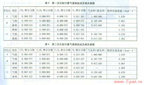 0.670 kmoL/h的氣相與原料氣組成混合氣體即為第三次引射的引射氣體,經(jīng)計(jì)算引射氣體組成及相關(guān)參數(shù)見表5狀態(tài)點(diǎn)A。