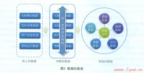 從孤立的數(shù)據(jù)到可以串聯(lián)的數(shù)據(jù)最終達(dá)到共享數(shù)據(jù)中心智能數(shù)據(jù)的目標(biāo),真正實(shí)現(xiàn)管網(wǎng)數(shù)據(jù)的完整性、可靠性、關(guān)聯(lián)性、有效性、實(shí)時(shí)性。從數(shù)據(jù)的集成到?jīng)Q策的智慧,是各個(gè)行業(yè)企業(yè)管理信息化發(fā)展的必然途徑和最終目標(biāo)。