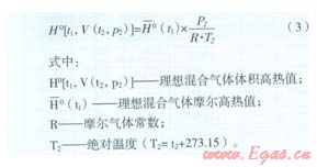 對于給定摩爾組分的理想燃?xì)饨M分,在燃燒溫度tl和壓力pl、計(jì)量溫度t2和壓力p2時的理想體積高熱值計(jì)算公式如下:
