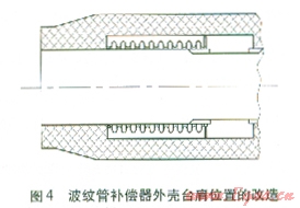 ②將波紋管補償器節(jié)點進行開挖,對所有波紋管補償器進行修復甚至更換。采用變徑管替代波紋管補償器外殼原有的臺肩結構(見圖4),避免應力集中而發(fā)生破壞。