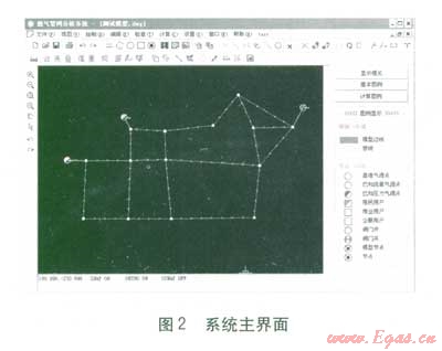 城市燃?xì)夤芫W(wǎng)與城市居民生活密切相關(guān),對(duì)城市管網(wǎng)的研究分析也日漸增多,不論管網(wǎng)模擬還是仿真,基本原理都是通過(guò)管網(wǎng)系統(tǒng)模型對(duì)實(shí)際管網(wǎng)系統(tǒng)進(jìn)行分析和處理,其目的在于了解真實(shí)的管網(wǎng)系統(tǒng)在不同工作條件下的實(shí)際運(yùn)行情況,以便對(duì)城市燃?xì)夤芫W(wǎng)進(jìn)行監(jiān)控[1]。已有許多學(xué)者在這方面進(jìn)行了研究,成果值得借鑒[2-5]。然而這些研究相對(duì)孤立,要么與管網(wǎng)信息管理系統(tǒng)聯(lián)系不夠密切,要么界面操作復(fù)雜。開(kāi)發(fā)直接建立于管網(wǎng)信息管理系統(tǒng)上并且操作方便的軟件尤為重要。