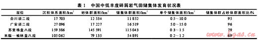 儲集體的大型化發(fā)育是指由平緩地勢與繼承性水系控制的沉積砂體,經(jīng)過成巖作用改造后形成的“儲集體群”,或碳酸鹽巖經(jīng)過后生溶蝕改造作用而形成的“縫洞單元”群,多以集群方式出現(xiàn),規(guī)模相當(dāng)大。本文所說的儲集體大型化發(fā)育,是指儲集體群的規(guī)模在數(shù)千至數(shù)萬平方千米以上(見表1、表2),如鄂爾多斯盆地蘇里格氣田已探明與基本探明的含氣面積超過3.3×104km2,相對獨(dú)立的氣藏數(shù)量多達(dá)數(shù)萬個。碳酸鹽巖縫洞型“儲集體群”在塔里木、四川和鄂爾多斯盆地都有發(fā)育,是碳酸鹽巖廣泛發(fā)育的一種儲集體類型。如果以縫洞單元作為油氣成藏的基本單元,也是由數(shù)千至數(shù)萬個油氣成藏單元組成的大型油氣藏群,分布面積在數(shù)千至數(shù)萬平方千米以上。