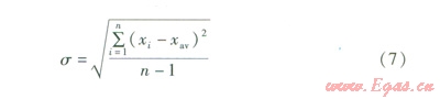 標(biāo)準(zhǔn)差σ的計(jì)算式為: