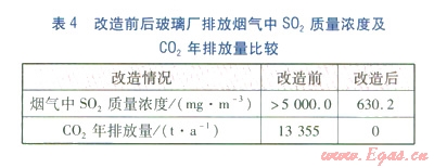改造前后玻璃廠排放煙氣中SO2質(zhì)量濃度及CO2年排放量比較見(jiàn)表4。由表4可知,改造后玻璃廠排放煙氣中的SO2質(zhì)量濃度明顯降低,溫室氣體CO2排放量為零。改造后,過(guò)剩豬糞及秸稈得到了合理利用,豬糞污水化學(xué)需氧量(COD)將明顯降低,秸稈的田間焚燒將明顯減少。因此,改造后的生物質(zhì)多聯(lián)供系統(tǒng)帶來(lái)巨大的環(huán)保效益。