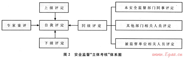 1) 安全監(jiān)督考核的實(shí)施應(yīng)遵循如下步驟:建立一個(gè)科學(xué)的考核機(jī)構(gòu),多方收集信息;進(jìn)行“立體考核”,上級(jí)評(píng)定安全監(jiān)督“立體考核”體系(見(jiàn)圖2)。