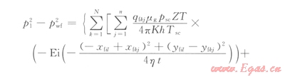 考慮到氣體只通過裂縫進(jìn)入水平井井眼,所以總產(chǎn)量等于各條點(diǎn)匯產(chǎn)量之和,即