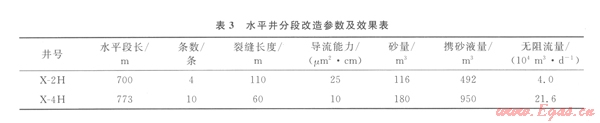依據(jù)上述研究論證結(jié)果,確定了合理的壓裂水平井參數(shù),以保證投資最少、開發(fā)效果最優(yōu)為目的。使用優(yōu)化的壓裂水平井裂縫參數(shù)在該區(qū)塊應(yīng)用了8口井,單井無阻流量7.2×104~27.6×104 m3/d.平均無阻流量為16.3×104 m3/d,與參數(shù)優(yōu)化前的無阻流量9.8×104 m3/d相比,增產(chǎn)效果顯著。