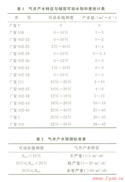 3)可動水飽和度小于l0%的氣井,產(chǎn)水量小于