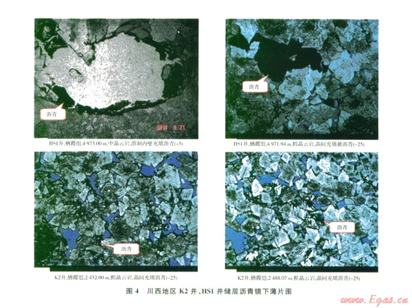 國內(nèi)外的油氣勘探實踐表明,當(dāng)儲層中有瀝青時,含瀝青的儲層喉道大小明顯比不含瀝青的儲層小。雖然儲層瀝青未使孔隙體積明顯減小。但會堵塞喉道而使?jié)B透率大大降低,同時使儲層的非均質(zhì)性增強。