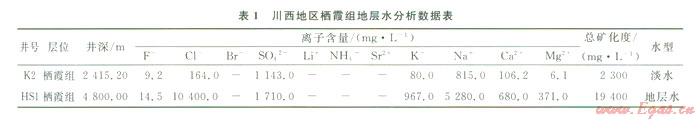 按導(dǎo)電機理的不同,巖石可分成兩大類,離子導(dǎo)電的巖石和電子導(dǎo)電的巖石,前者主要靠連通孔隙中所含的溶液的正負(fù)離子導(dǎo)電;后者靠組成巖石顆粒本身的自由電子導(dǎo)電。高阻水層的形成主要受宏觀地質(zhì)背景、微觀孔隙結(jié)構(gòu)、孔隙充填物以及流體性質(zhì)等因素的影響。從電性特征看,川西南部的漢深l井與川西北部的礦2井電阻率都較高,根據(jù)該區(qū)岡版解釋儲層流體具有典型的氣層特征,但測試結(jié)果卻與測井解釋存在著較大差異,兩口井均產(chǎn)水。從其水化學(xué)分析結(jié)果看,兩者水的性質(zhì)也存在較大差異,從K2井水分析資料來看:Cl-含量僅l 64 mg/L,反映地層水為低礦化度的NaHC03型淡水,而HS1井則為高礦化度的CaCl2型地層水(表1)。雖然兩者都產(chǎn)水,但是由于其水的性質(zhì)不同,因而兩者代表著不同的成藏過程和地質(zhì)意義。下面分別分析高阻水層的成因。