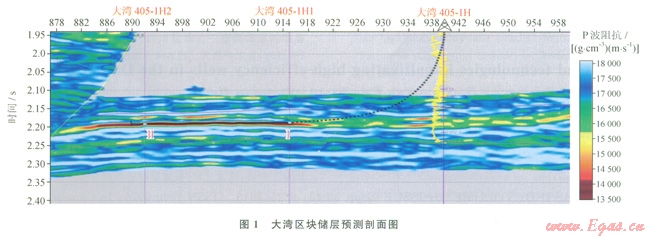 儲(chǔ)層預(yù)測(cè)結(jié)果表明,平面上儲(chǔ)層非均質(zhì)性強(qiáng)、厚度差異大。北部?jī)?chǔ)層分布相對(duì)穩(wěn)定,連續(xù)性好,儲(chǔ)層厚度100~200m;南部局部發(fā)育儲(chǔ)層,Dl02井區(qū)儲(chǔ)層現(xiàn)對(duì)發(fā)育,最厚在100m左右,臨近的Dl01井區(qū)儲(chǔ)層不發(fā)育。大灣區(qū)塊北部是部署開發(fā)井有利區(qū)域。